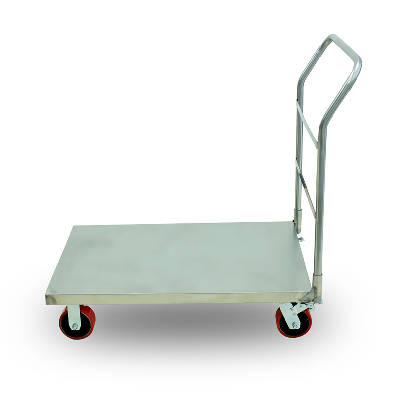 折叠式全静不锈钢手推车属于 物流周转设备,由SUS304不锈钢主体车板和扶手,行走轻便及超安静脚轮(尼龙支架、不锈钢支架)等组成。